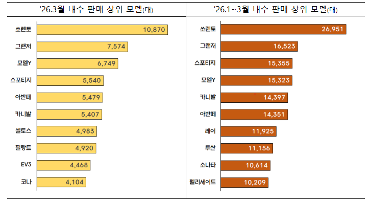 한국 자동차, 1분기 내수·수출·생산 ‘트리플 성장’