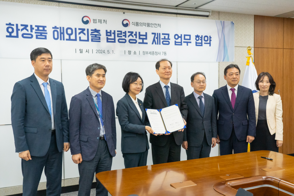 법제처와 식품의약품안전처는 1일 정부세종청사에서 ‘화장품 해외진출 법령정보 제공 협력 업무 협약’을 체결했다고 밝혔다. 이날 두 기관은 각각 보유하고 있는 해외 법령정보와 화장품 규제정보를 공동으로 활용하여 국민‧소비자와 관련 업계에 화장품 해외 진출에 특화된 국가별 규제 및 법령정보를 제공하기 위해 협력하기로 합의했다.