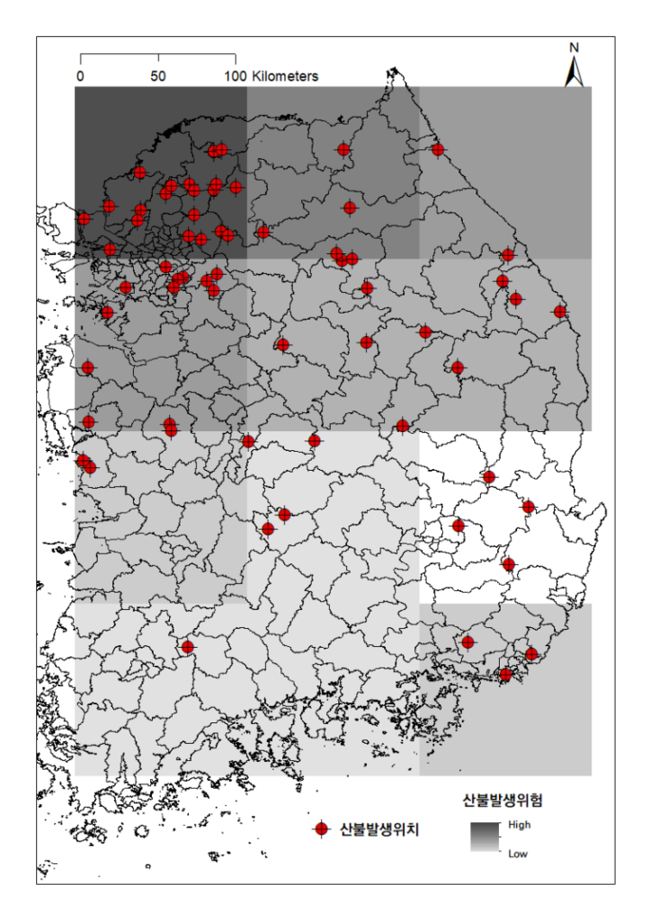지역별 상대적 산불위험도 및 실제 산불발생 패턴. (사진=산림청)