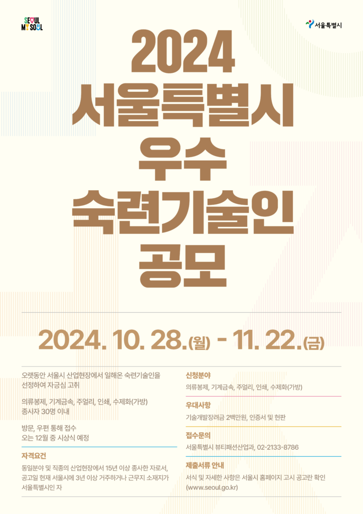고경인 서울시 뷰티패션산업과장은 "이번 공모를 통해 지역 제조업의 근간을 이루는 소공인들의 자긍심을 고취하고, 기술의 가치를 재조명하는 계기가 되길 바란다"고 밝혔다. 이번 공모는 2022년부터 시작된 사업으로, 도시제조업의 명맥을 잇고 있는 숙련기술인을 발굴하고 시상함으로써 자긍심을 고취하고 지역사회 발전에 기여하는 것을 목표로 하고 있다. 서울시는 이를 통해 숙련기술인의 헌신이 존중받는 사회풍토를 조성하겠다는 의지를 밝혔다.
