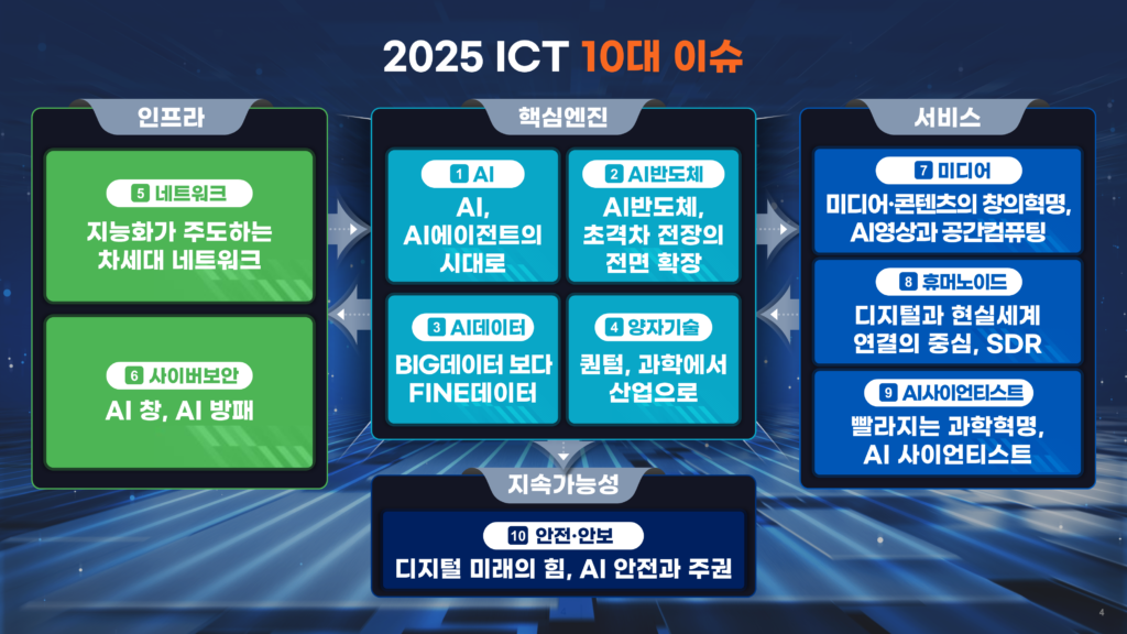 과학기술정보통신부가 주최하는 '2025 ICT 산업전망 컨퍼런스'가 11월 14일부터 15일까지 서울 엘타워에서 개최된다. 올해로 24회를 맞는 이번 행사는 "디지털·AI 시대: 새롭게 도약하는 대한민국"을 주제로, ICT 분야 12개 전문기관이 공동 주관한다.
