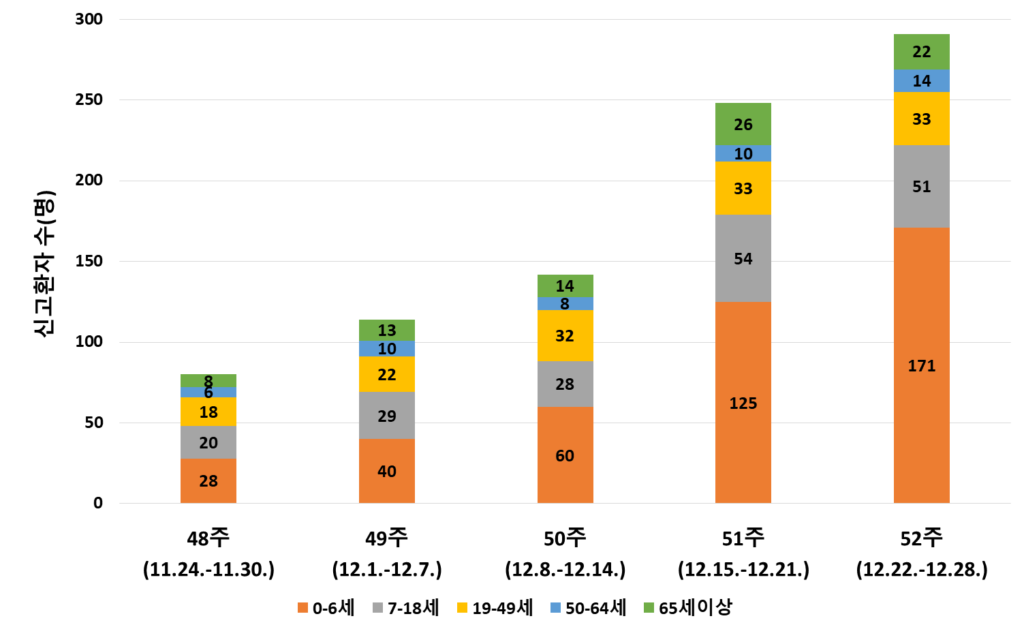 • 최근 5주간 환자 수 3.6배 급증, 0~6세 아동이 전체의 58.8% 차지
