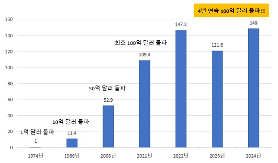 산업통상자원부는 2024년 자유무역지역(FTZ) 수출이 전년 대비 22.5% 증가한 149억 달러를 기록, 역대 최고치를 달성했다고 4일 발표했다. 이는 1970년 마산자유무역지역 지정 이후 4년 연속 100억 달러를 돌파한 것이다.