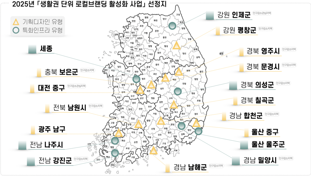 행정안전부가 지역 고유의 특성을 살려 생활권 단위로 매력을 키우는 '로컬브랜딩 활성화 사업'의 2025년 신규 대상지 18곳을 선정하고, 총 91억 원의 특별교부세를 지원한다고 16일 밝혔다.