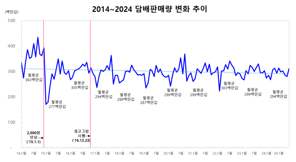 - 면세 담배 포함한 실질 판매량도 줄어, 금연 흐름 가속화