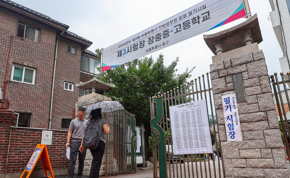 지난 2024년 6월, 수험생들이 9급 공채 필기 시험을 위해 서울 중구 장충고등학교에 마련된 고사장으로 들어가고 있다. (사진=연합뉴스)