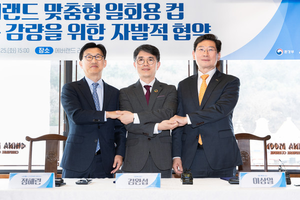 지난 3월 25일, 환경부는 에버랜드와 ‘맞춤형 일회용 컵 사용 감량을 위한 자발적 협약’을 체결했다. (사진=환경부)