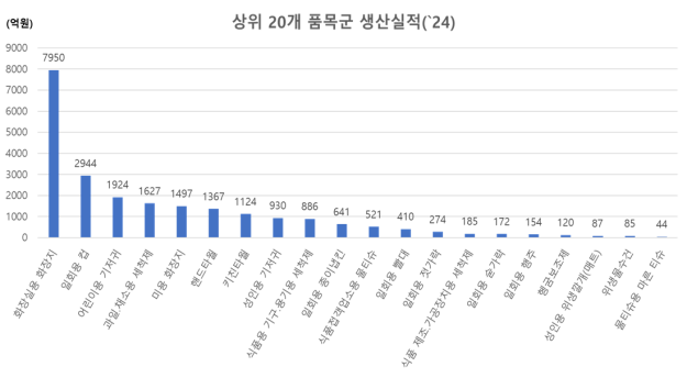 위생용품 품목별 생산실적 현황('24, 상위 20개 품목). (사진=연합뉴스)