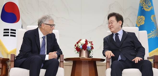 이재명 대통령, 빌 게이츠 접견 - 이재명 대통령이 21일 용산 대통령실에서 빌 게이츠 게이츠재단 이사장을 접견하고 있다. (사진=연합뉴스)