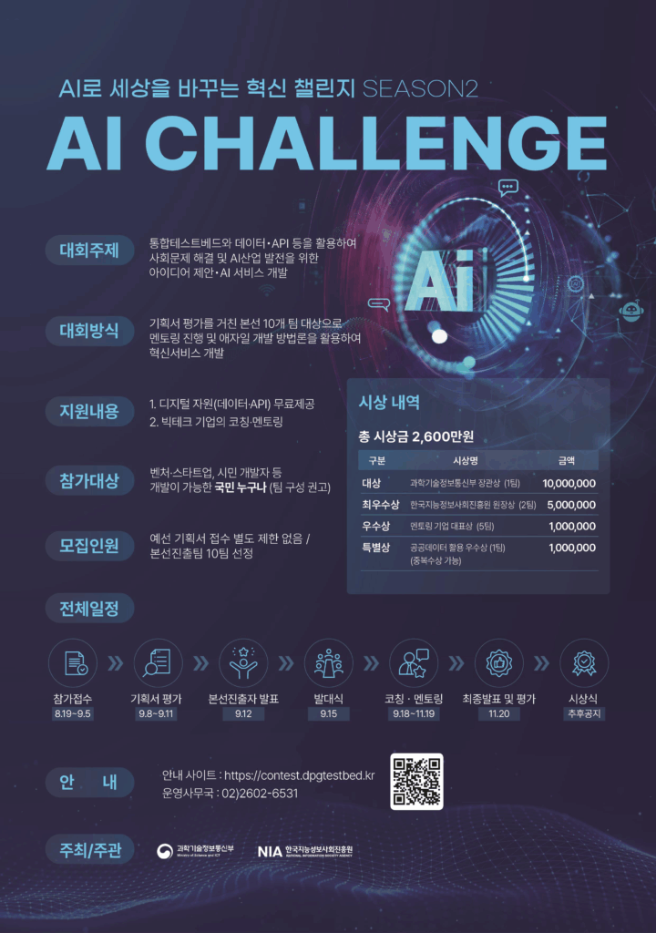 국내 최대 규모의 인공지능 창업·혁신 경연인 “인공 지능 경진대회(AI 챌린지) 2025” 본선 대장정이 시작됐다. 과학기술정보통신부와 한국지능정보사회진흥원은 15일 서울사무소에서 본선 진출 10개 팀이 참여하는 발대식을 열고 9주간의 집중 개발 일정을 공식화했다.