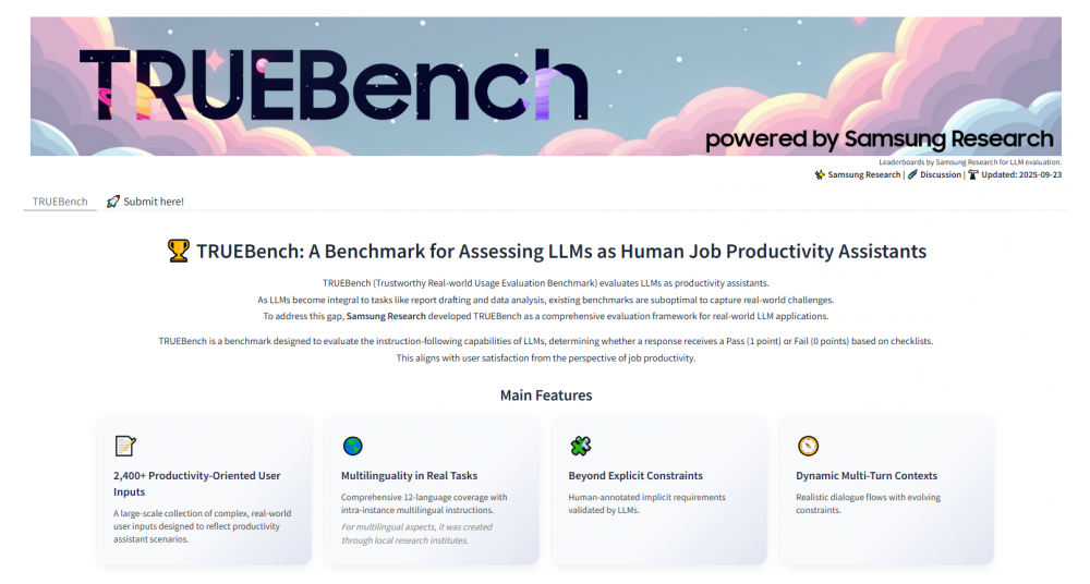 허깅페이스(Hugging Face)에 공개된 트루벤치(TRUEBench) 사이트 메인 화면. (사진=삼성전자)