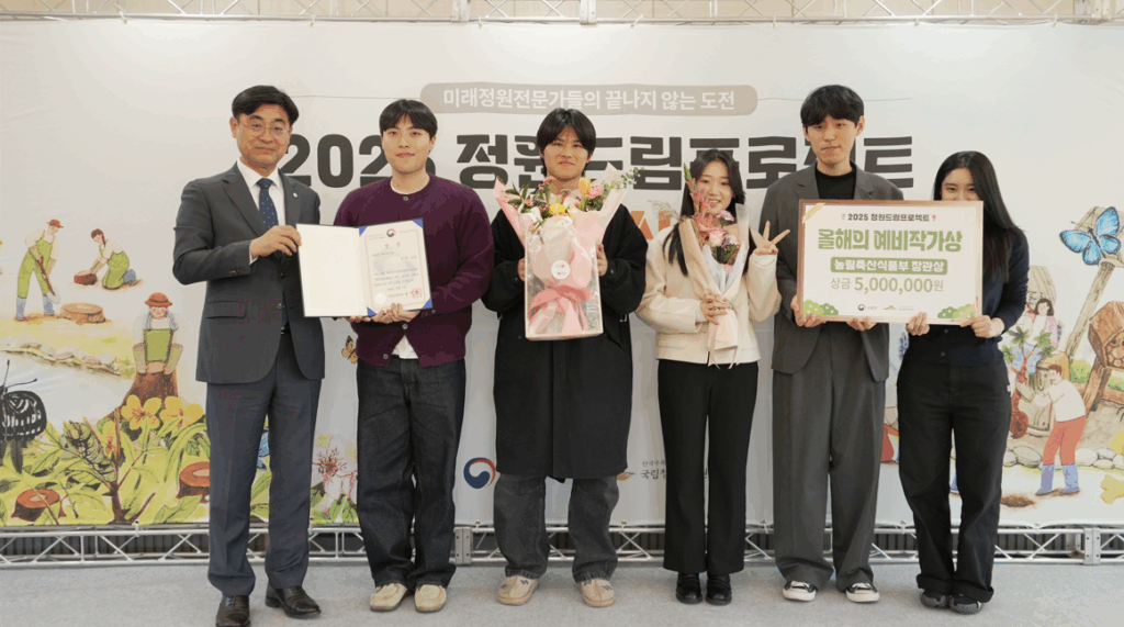 이 밖에도 경희대학교 ‘그린버디즈’팀과 동아대학교 ‘위플래시’팀이 산림청장상을, 국립공주대학교 ‘뇽운뇽’팀, 서울여자대학교 ‘마중풀’팀, 전북대학교 ‘자란다’팀이 한국수목원정원관리원 이사장상을 받았다. 총 6개 팀에 1,400만 원의 상금이 수여됐다.