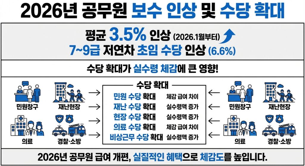 2026년 보수 인상은 2026년 1월 1일부터 적용된다. 직급별 봉급표와 수당 세부 기준은 개정된 규정과 각 기관 공지를 통해 확인할 수 있다