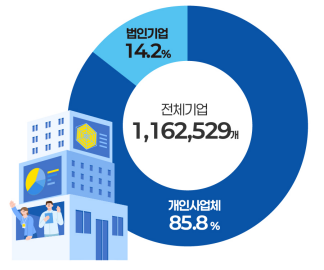 중소벤처기업부가 31일 발표한 「2025년 1인 창조기업 실태조사」 결과에 따르면, 국내 1인 창조기업 수는 116만 2,529개로 전년(100만 7,769개) 대비 15.4%나 수직 상승했다. 이는 전체 창업기업의 약 23.7%에 달하는 수치로, 나홀로 창업이 우리 경제의 핵심 축으로 완전히 자리 잡았음을 보여준다.