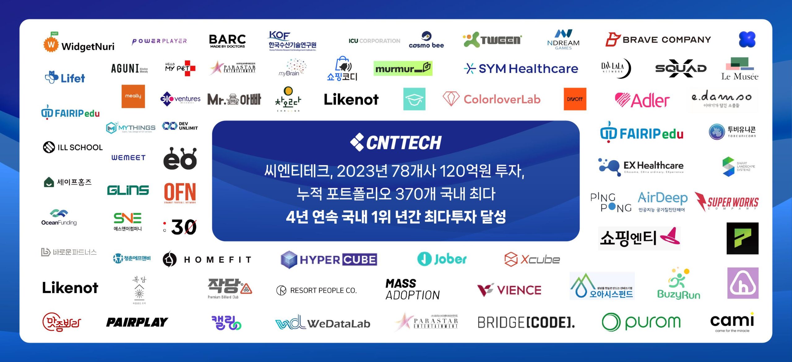 씨엔티테크, 2023년 78개사 120억원 투자… 투적 포트폴리오 370개로 국내 최대