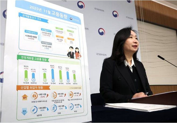 11월 취업자 22만5천명 증가…15세 이상 고용률·경활률 역대 최고 경신, 서비스업 중심 내수 호조 지속