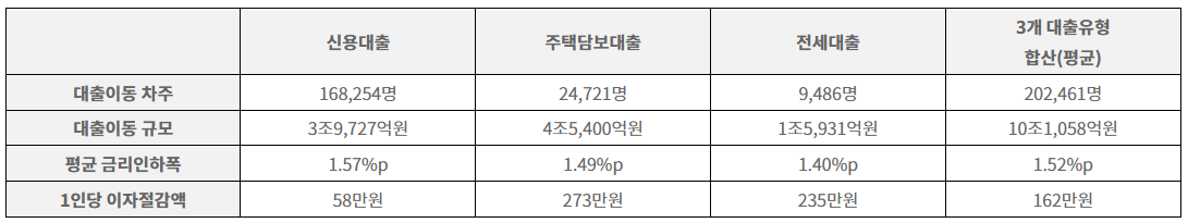 대출 갈아타기, 1년 동안 10조원 규모 약 20만명 이용