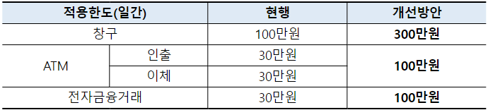 한도제한계좌 이체·ATM 거래한도… "30만원에서 100만원으로 상향"