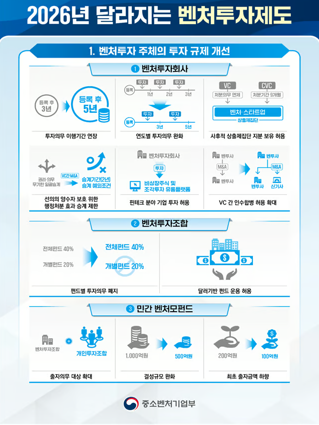 벤처기업 투자 문턱 대폭 낮춘다…투자의무 3년→5년 연장, 세액공제 3%→5% 상향