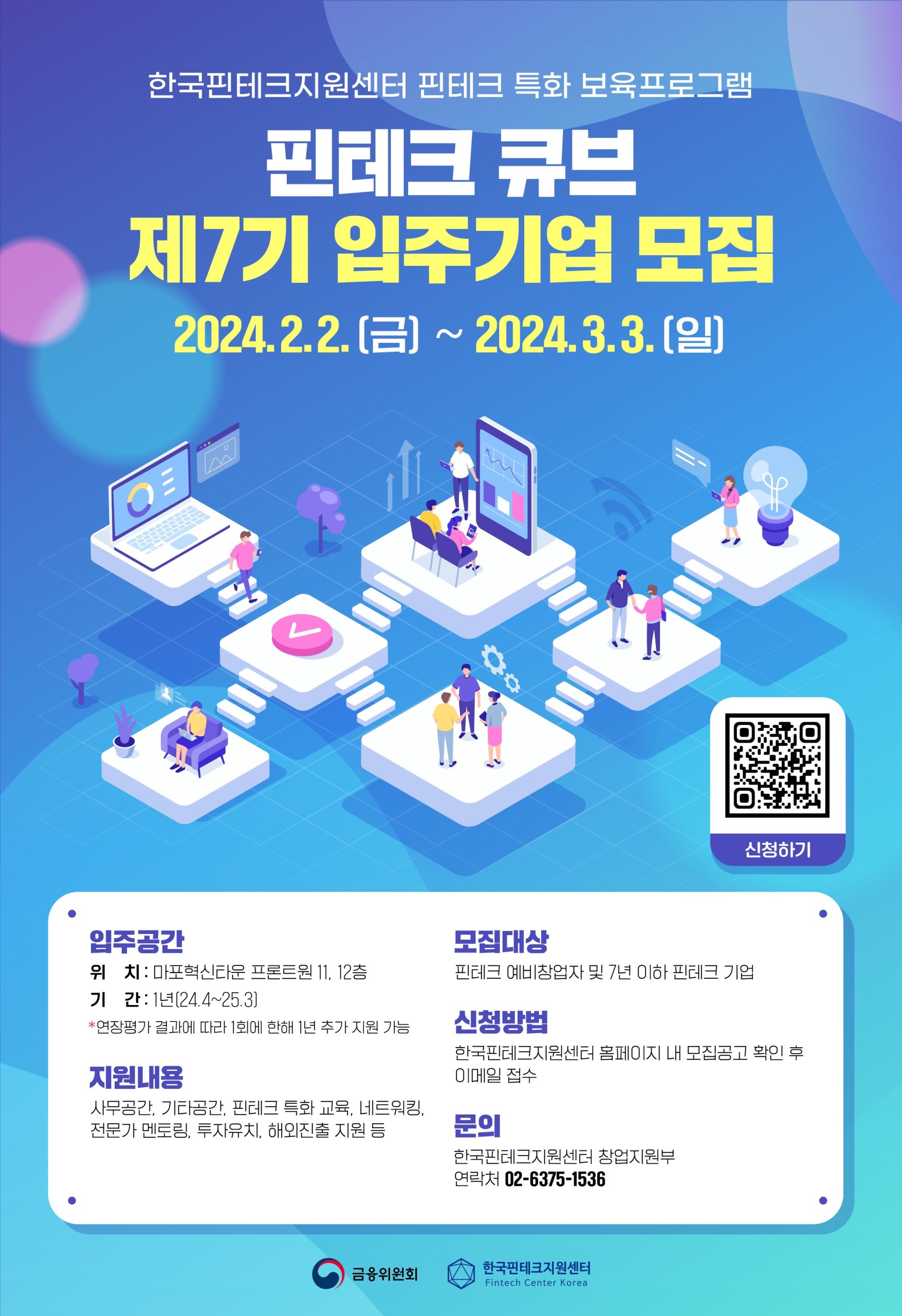 한국핀테크지원센터, 핀테크 큐브 7기 입주 기업 모집