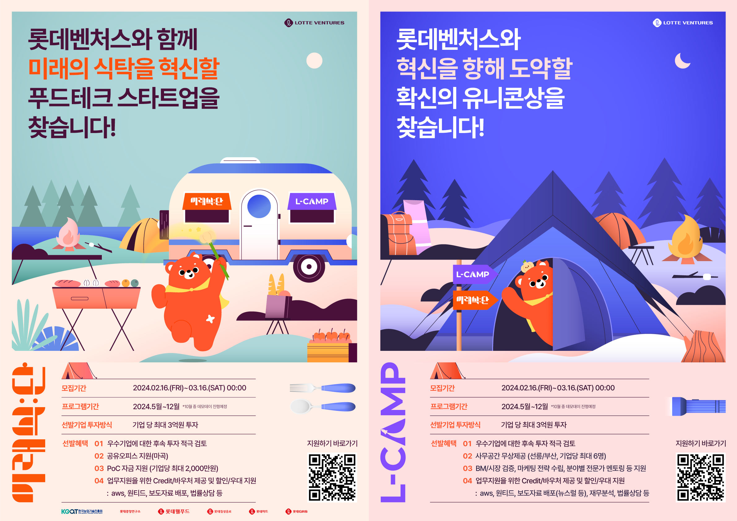 롯데벤처스, 2024 L-CAMP 12기&부산 6기, 미래식단 4기 모집 시작