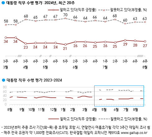 윤대통령 지지율 23%… '경제·민생·물가' 미흡