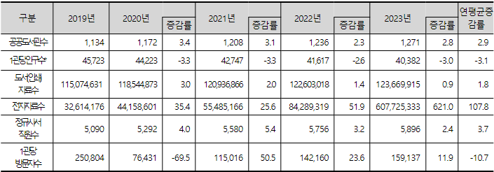 전국 공공도서관 방문자 수, 전년 대비 11.9% 증가