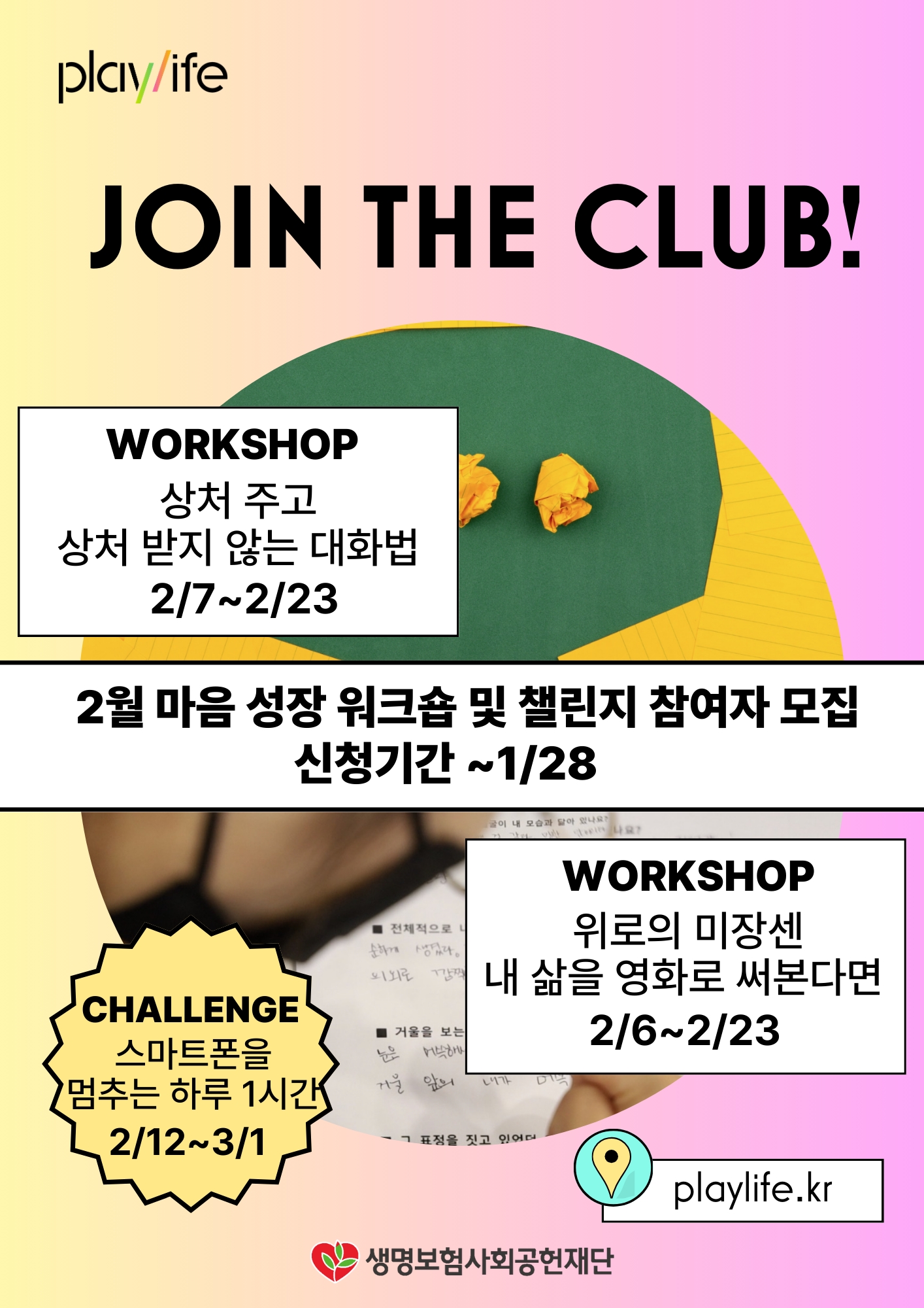 생명보험재단, 플레이라이프 2월 클럽 참여자 모집