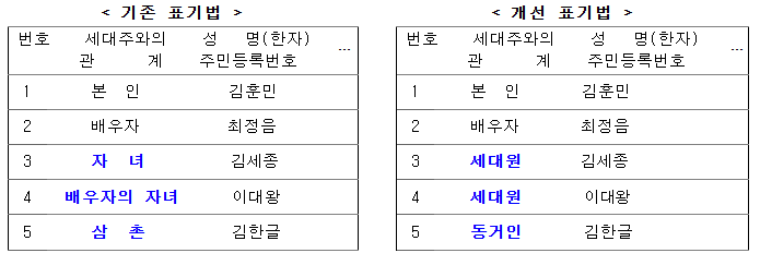 주민등록표 가족관계 표시 변경… 재혼가정 자녀도 ‘가족’으로