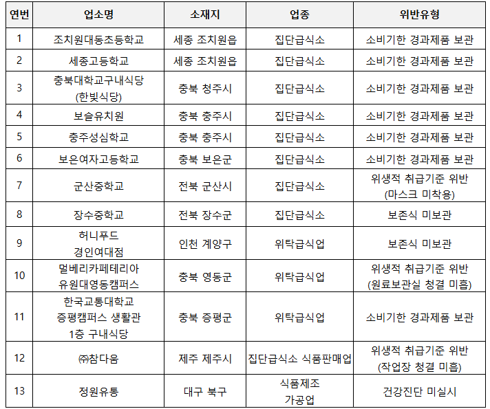 가을 학기 학교 급식·주변 먹거리 위생 점검…15곳 법 위반 적발