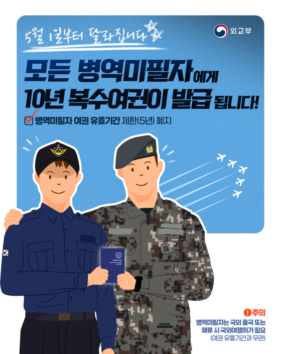 병역미필자도 10년 복수여권 발급… 5월 1일부터 시행