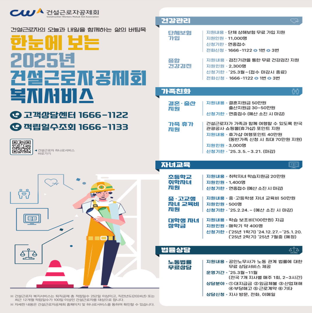 건설근로자공제회, 60억 원 규모 복지서비스로 2만 1천명 지원…생애주기 맞춤형 혜택 제공