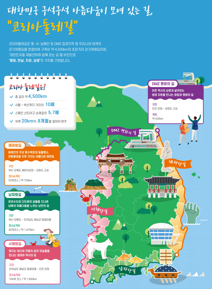 대한민국 대표 걷기 여행길 '코리아둘레길' 4,500km 전 구간 완성