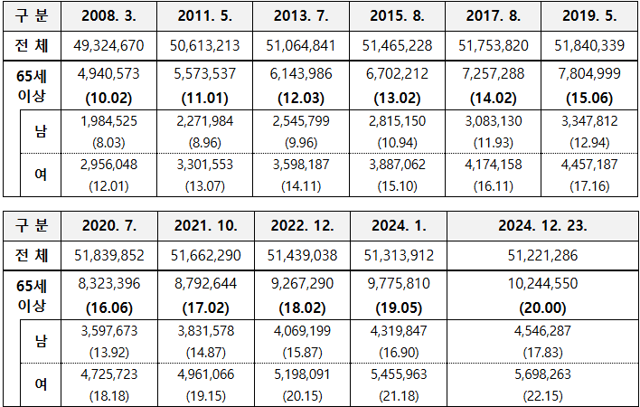 "65세 이상 인구 비중 20% 돌파… 고령 사회 진입 초읽기"