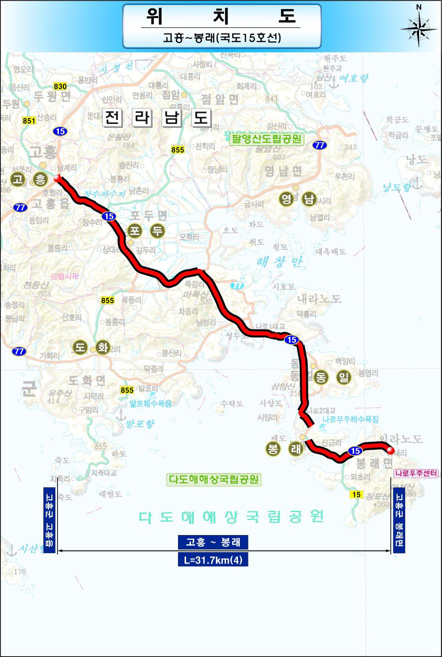 국도 15호선 고흥~봉래 4차로 확장, 2028년 착공 목표…‘우주산업 중심도로’로 변신 예고