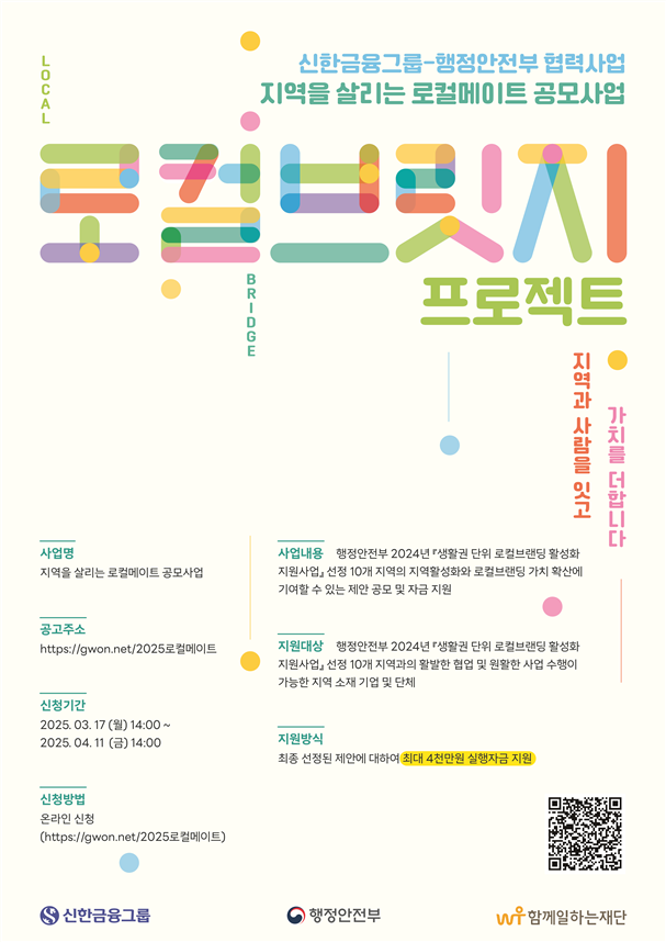 행안부-신한금융그룹, '로컬브릿지 프로젝트' 2025년 참여자 모집…지역경제 활성화 기대