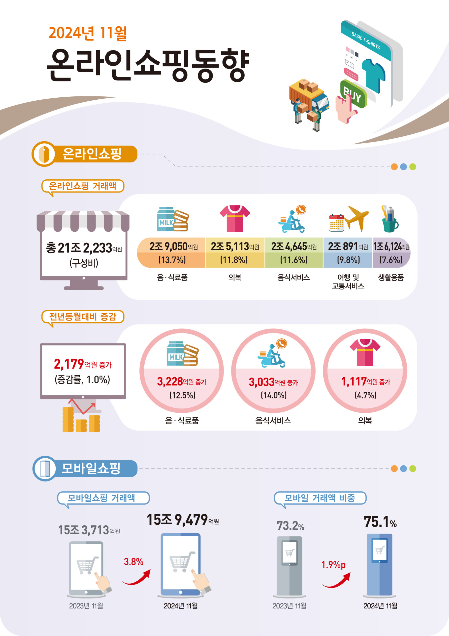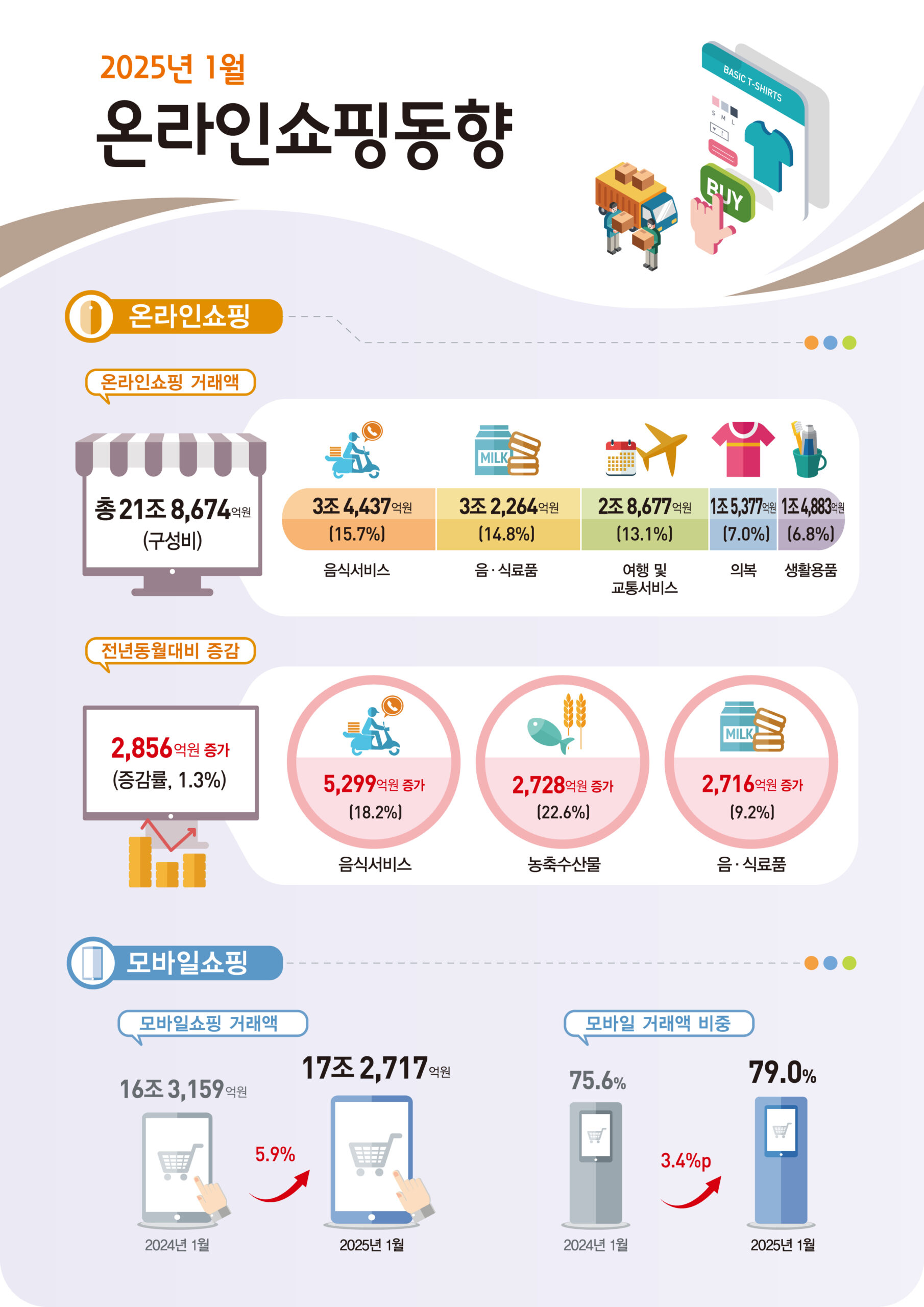 2025년 5월 온라인쇼핑 거래액 22조 4,870억 원…모바일 비중 77% 돌파, 음식서비스·식료품 성장 견인