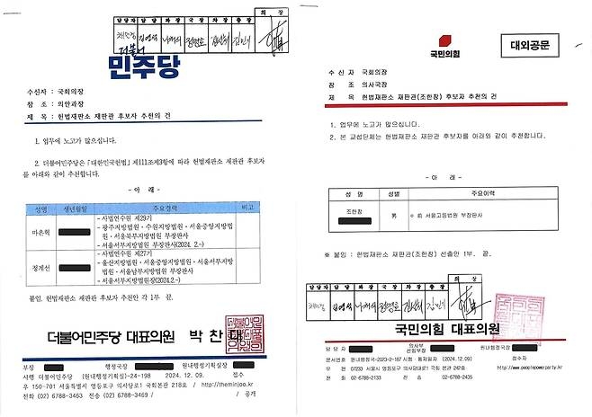 우원식 의장, "헌법재판관 후보 추천… 여야 합의 증거 있다" 공문 공개