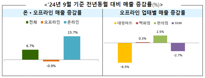 2025년 9월 국내 주요 유통업체 매출 7.7% 증가…온라인 성장 견인 속 오프라인은 감소세