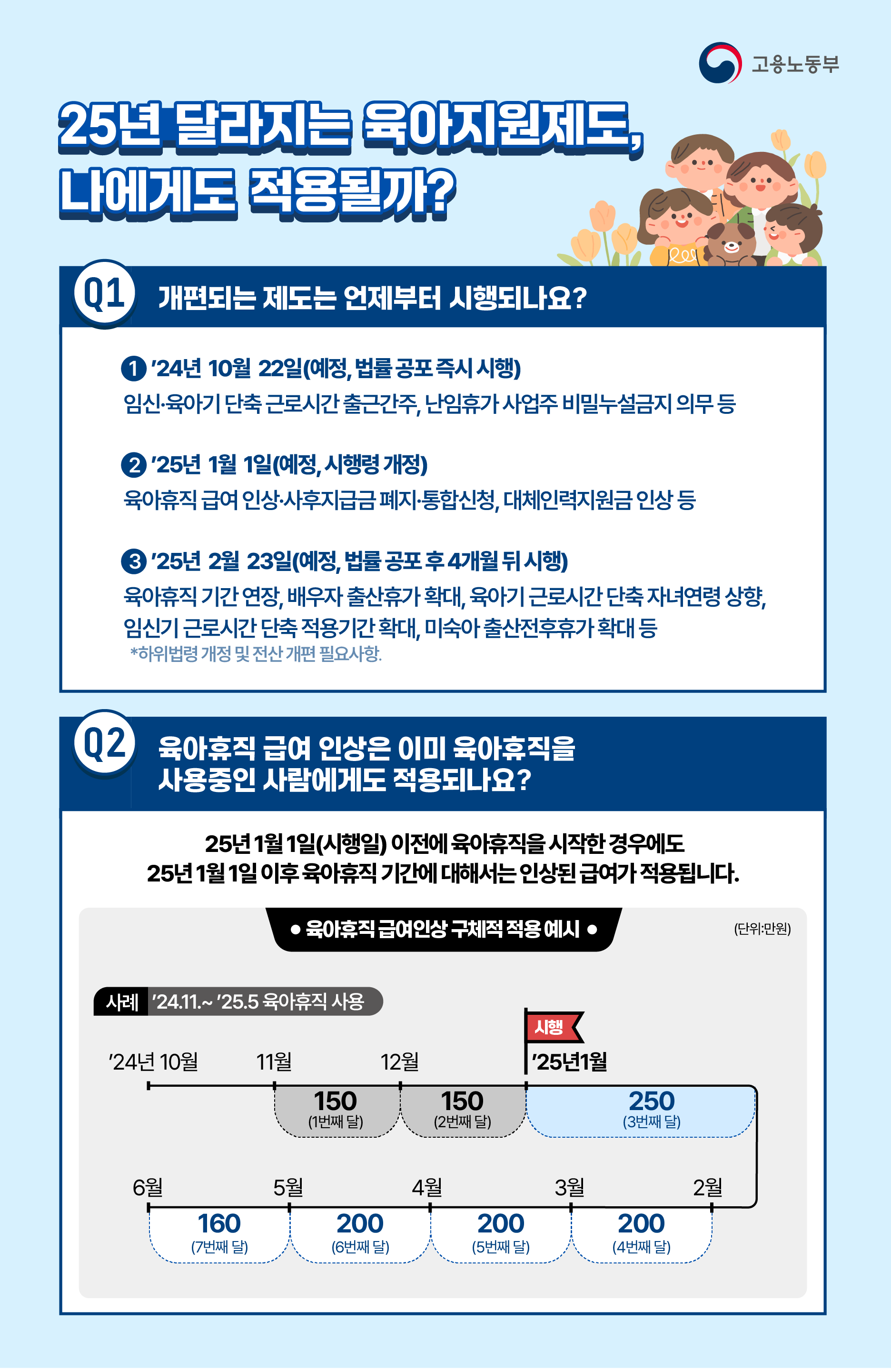 육아휴직 급여인상… 150만원에사 '최대 250만원' 시행령 입법예고