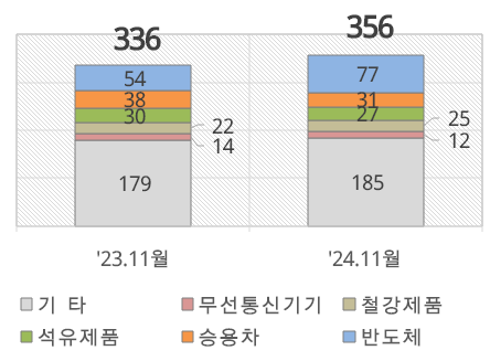 반도체 수출 호조, 11월 무역수지 8억 달러 흑자 기록