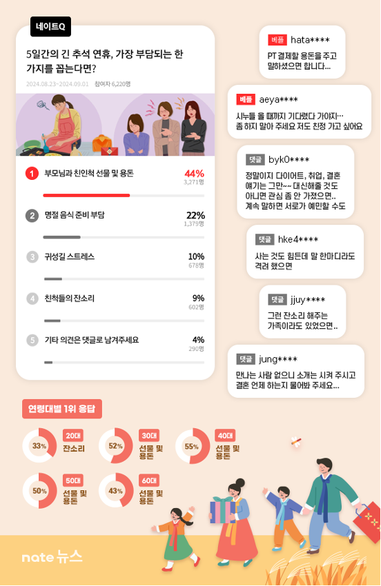 "올 추석 ‘부모님과 친인척 선물・용돈’이 가장 부담"