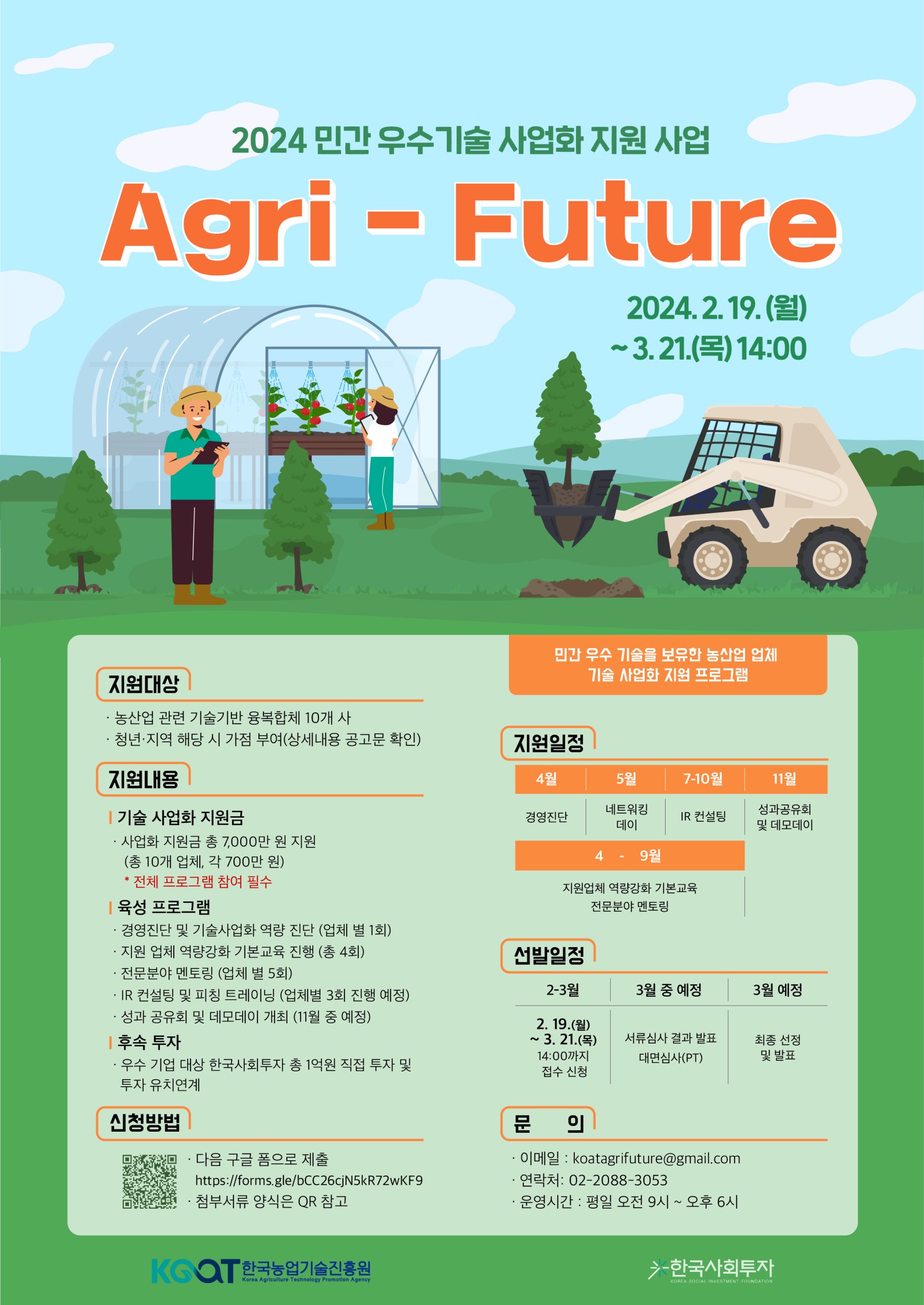 한국사회투자-한국농업기술진흥원, 우수 기술 보유한 농산업 업체 발굴 및 육성… 총 1억원 투자