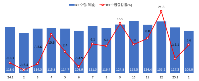 2월 ICT 수출 167억 달러로 반등…휴대폰·통신장비 호조에 힘입어