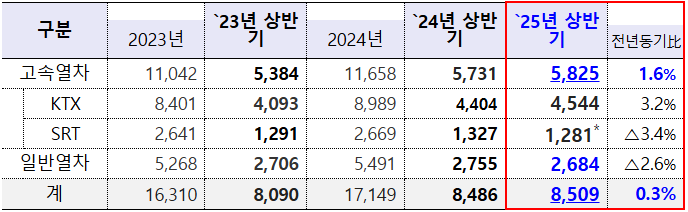 고속철도 이용객 5,825만명 돌파…신규 노선·차세대 열차 효과에 외국인 이용도 급증